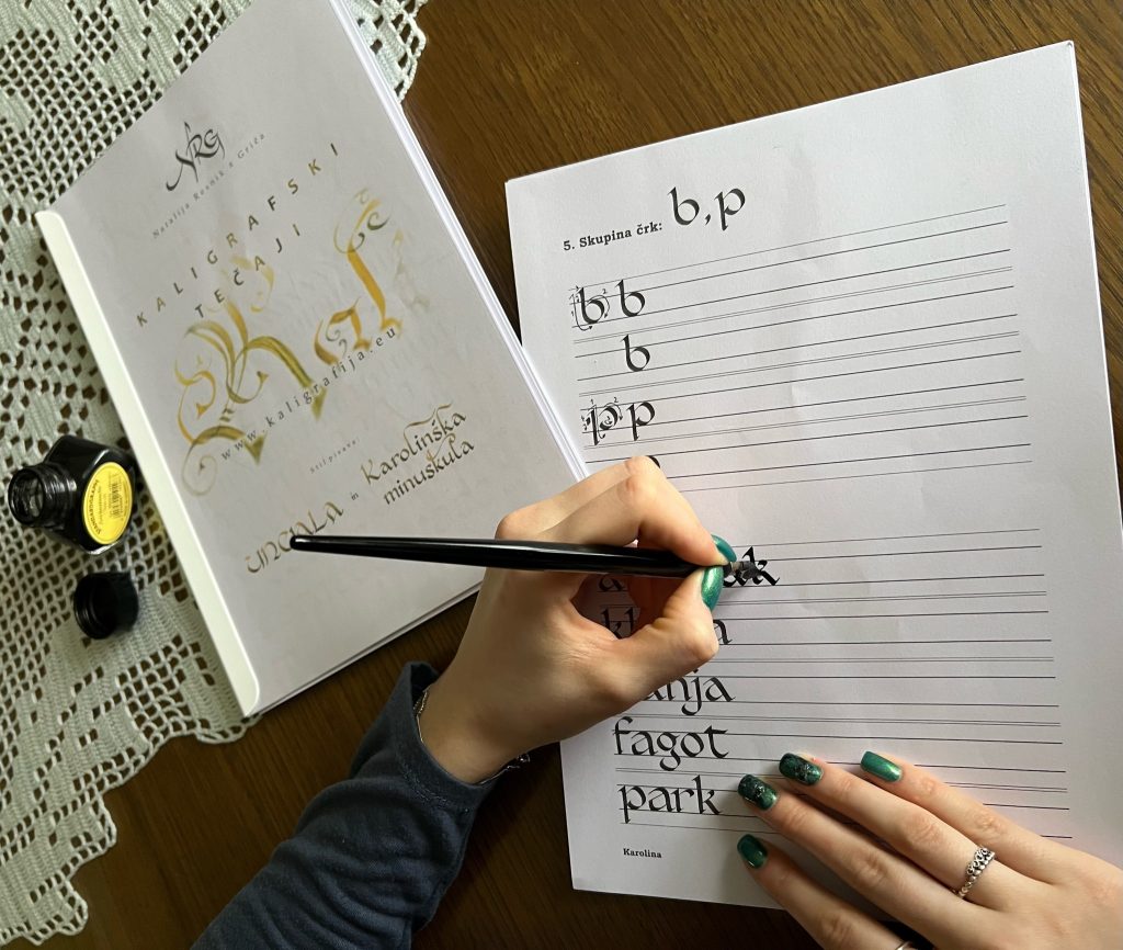 - Začnite s širšimi peresnimi konicami, ki omogočajo boljšo kontrolo nad črkami.