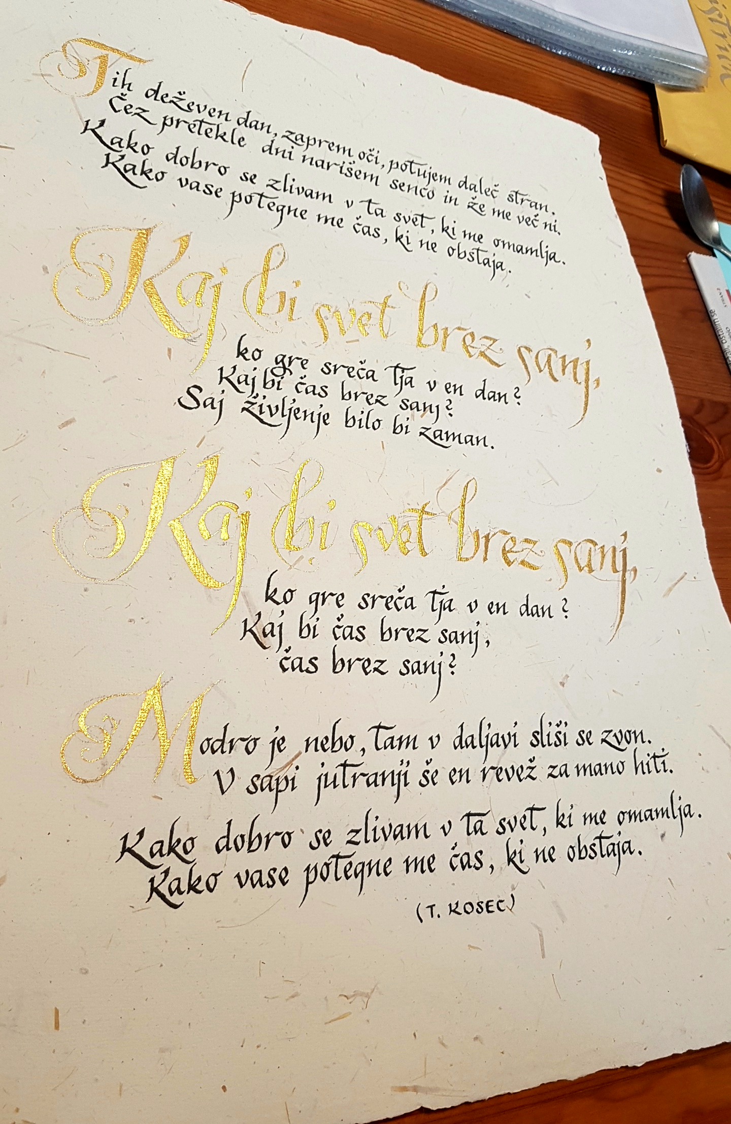 - seznanjanje s peresi in tušem, pravilna drža in namakanje,